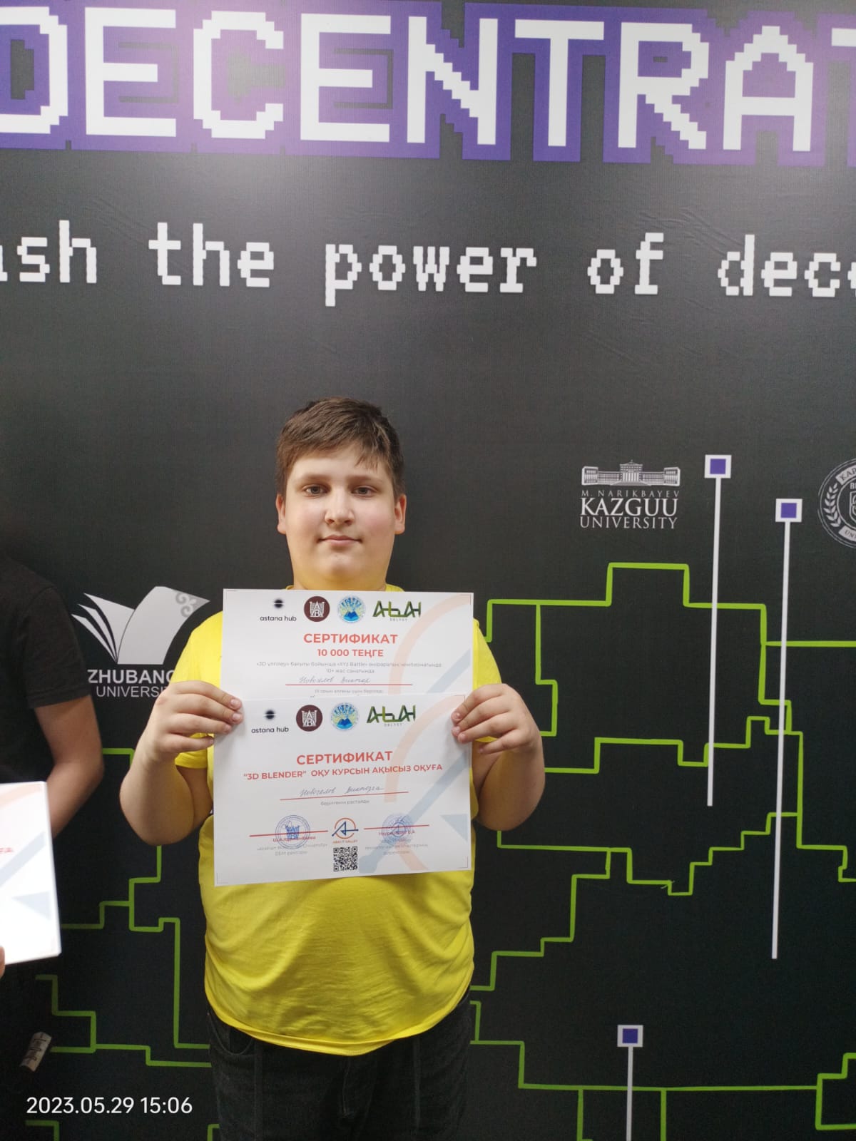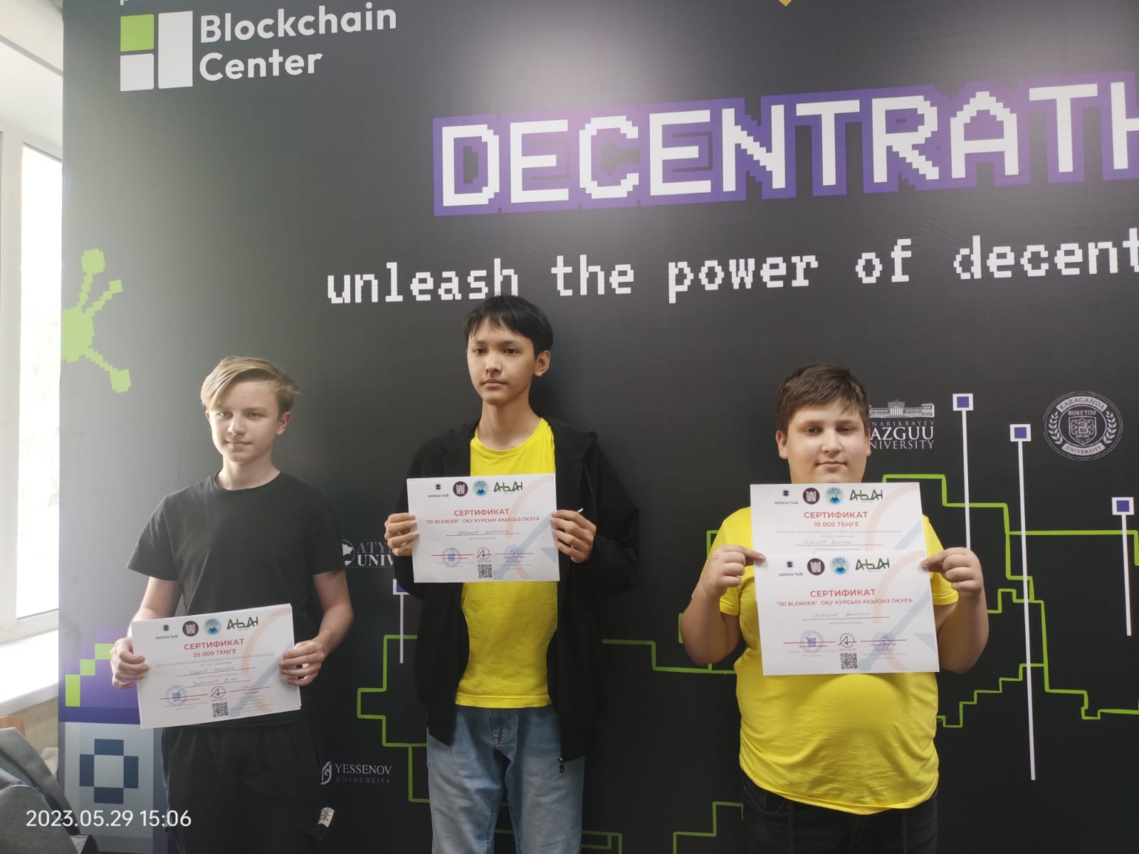 По итогам чемпионата победителями в возрастной категории 10+ ученик 6 «А» класса Новоселов Виктор КГУ СОШ №40 г.Семей занял ІІІ место. Он получил сертификаты на курсы обучения на базе «Abai IT-Valley» и денежный приз в размере 10000 тенге.