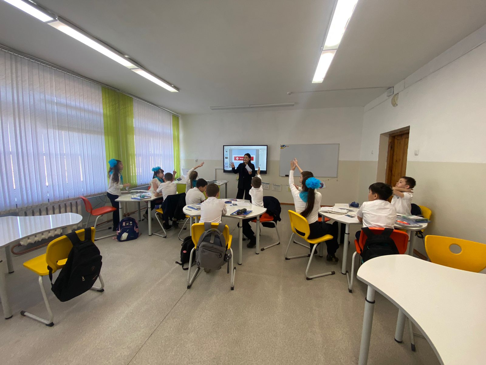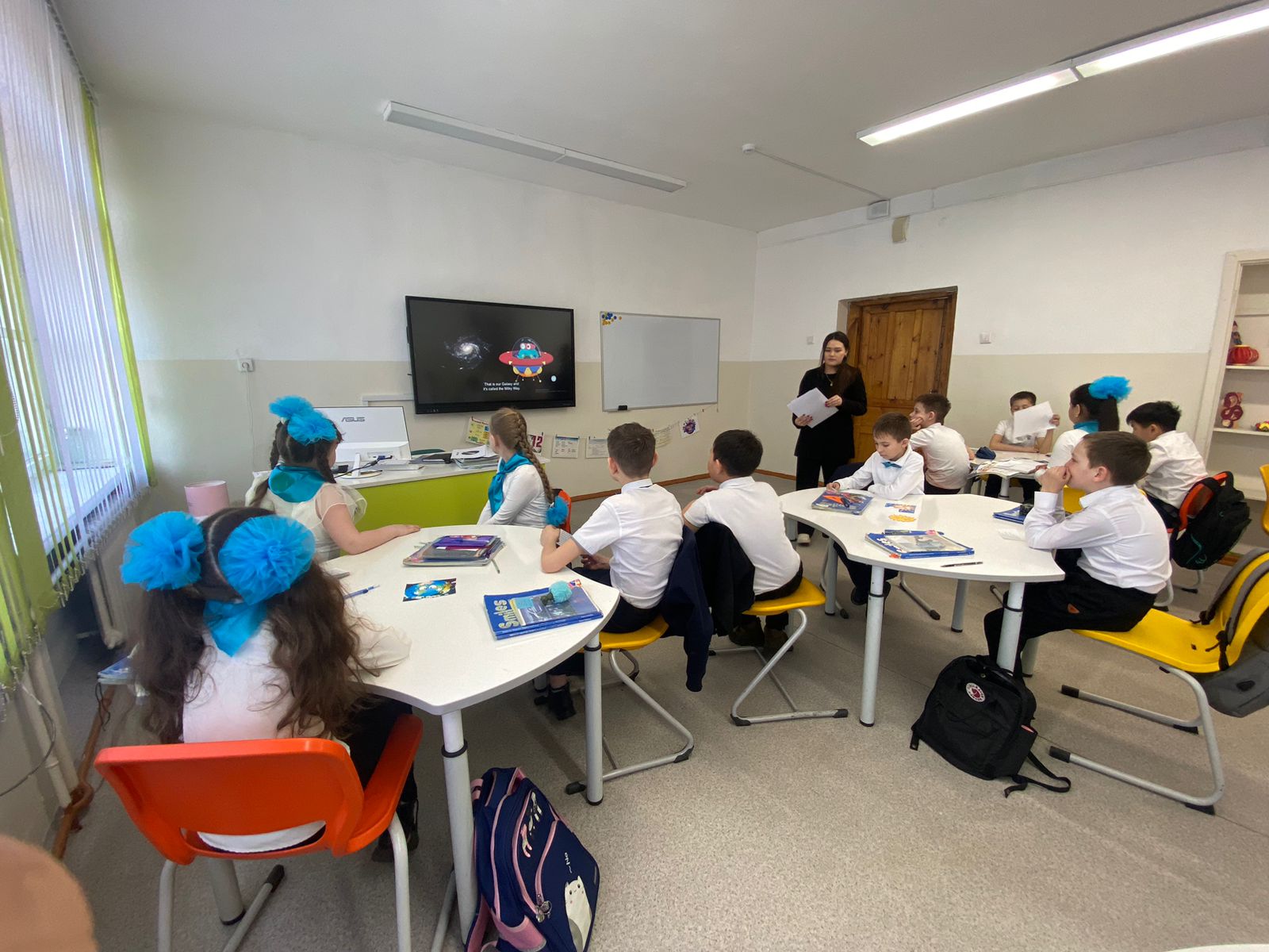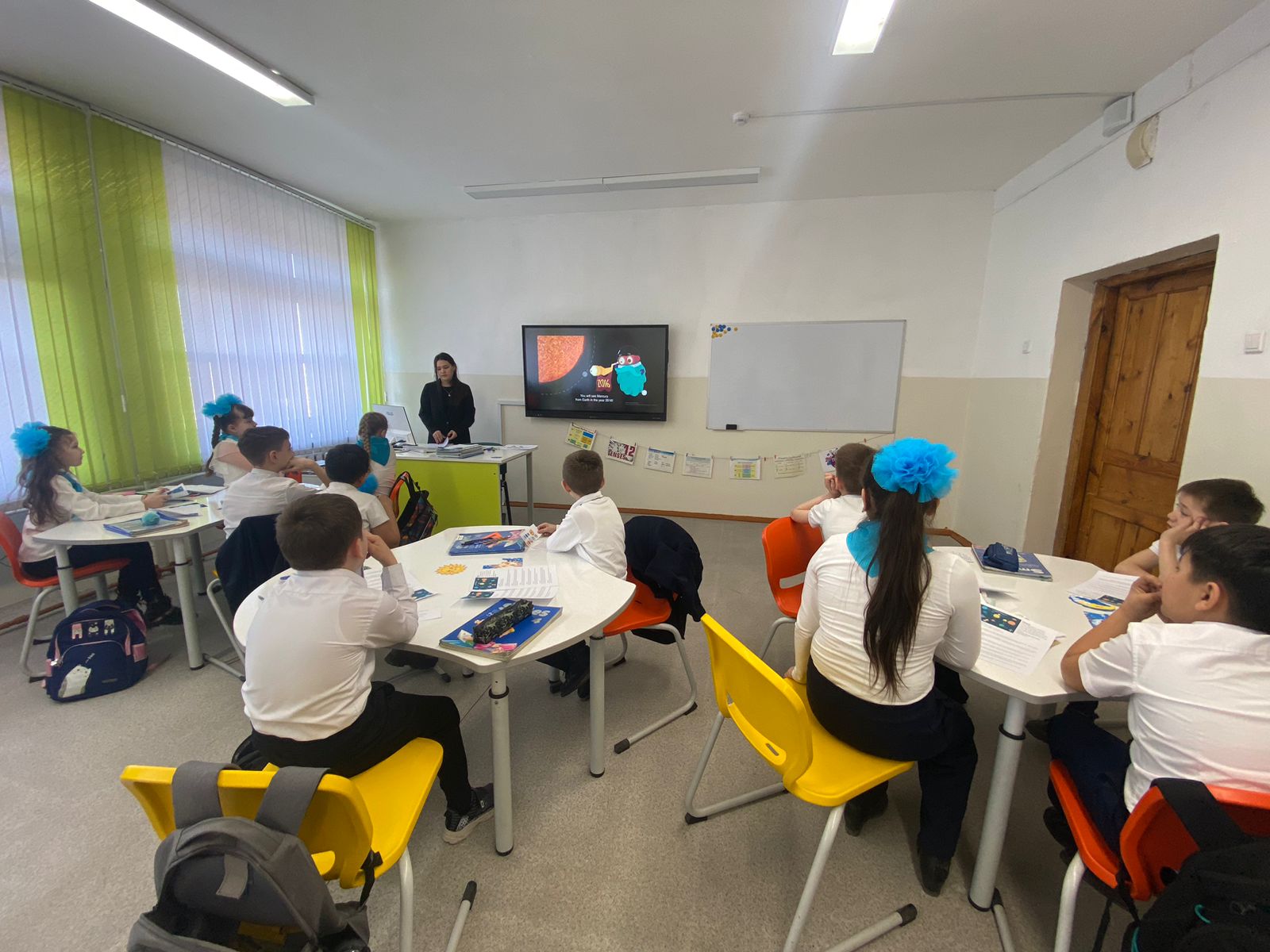 4.04.2023 в рамках недели английского языка учителем Бермаганбетовой И.М. был проведен открытый урок в 4 «А» классе на тему «Planets». 🎯Цель урока: освоить новую лексику, узнать какие планеты входят в солнечную систему и как они называются на английском языке. В начале урока ученики получили карточки с помощью которых был использован прием групповой работы. Учителем заранее были подготовлены красочные наглядности,что способствовало активному участию учеников на уроке. Поставленные цели были достигнуты.