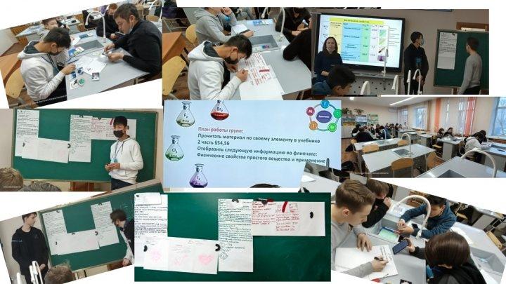 3.02.22 в рамках недели ЕМЦ в 10 классе прошел открытый урок химии на тему «Галогены». Учитель химии Гирева Е.Ю. кратко, но интересно рассказала историю создания и названия каждого галогена. Ребята вспомнили строение, физические свойства элементов седьмой группы, а также их применение. Работая в микрогруппах десятиклассники применяли свои знания и, изучая новый материал, создавали флипчарты каждый о своем галогене. В конце урока представители микрогрупп озвучили свою работу и продемонстрировали выбранные карточки с применением галогена, который достался их группе. Остальные группы оценивали выступление. Урок прошел плодотворно, все учащиеся активно работали, отвечали на вопросы, аргументировали ответы.