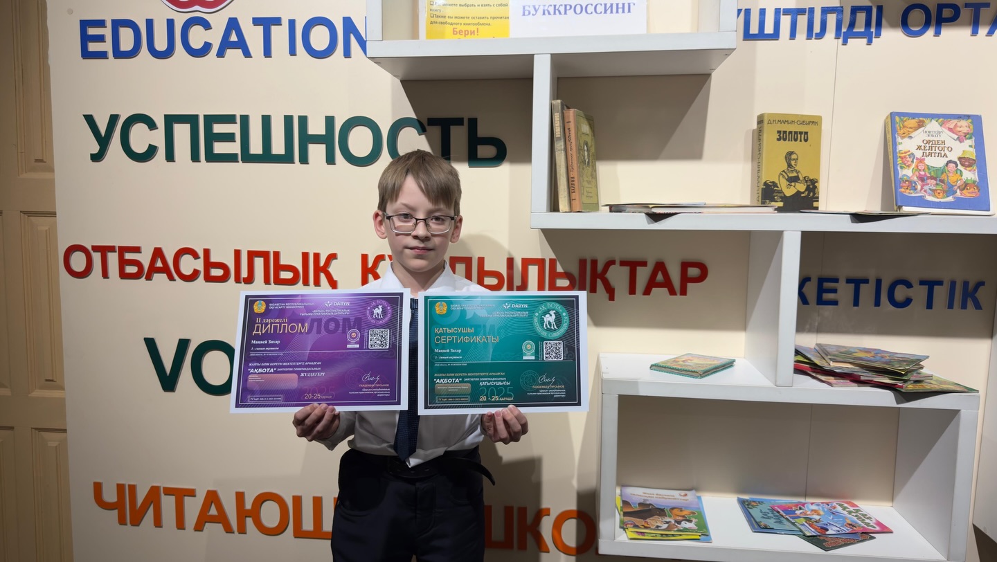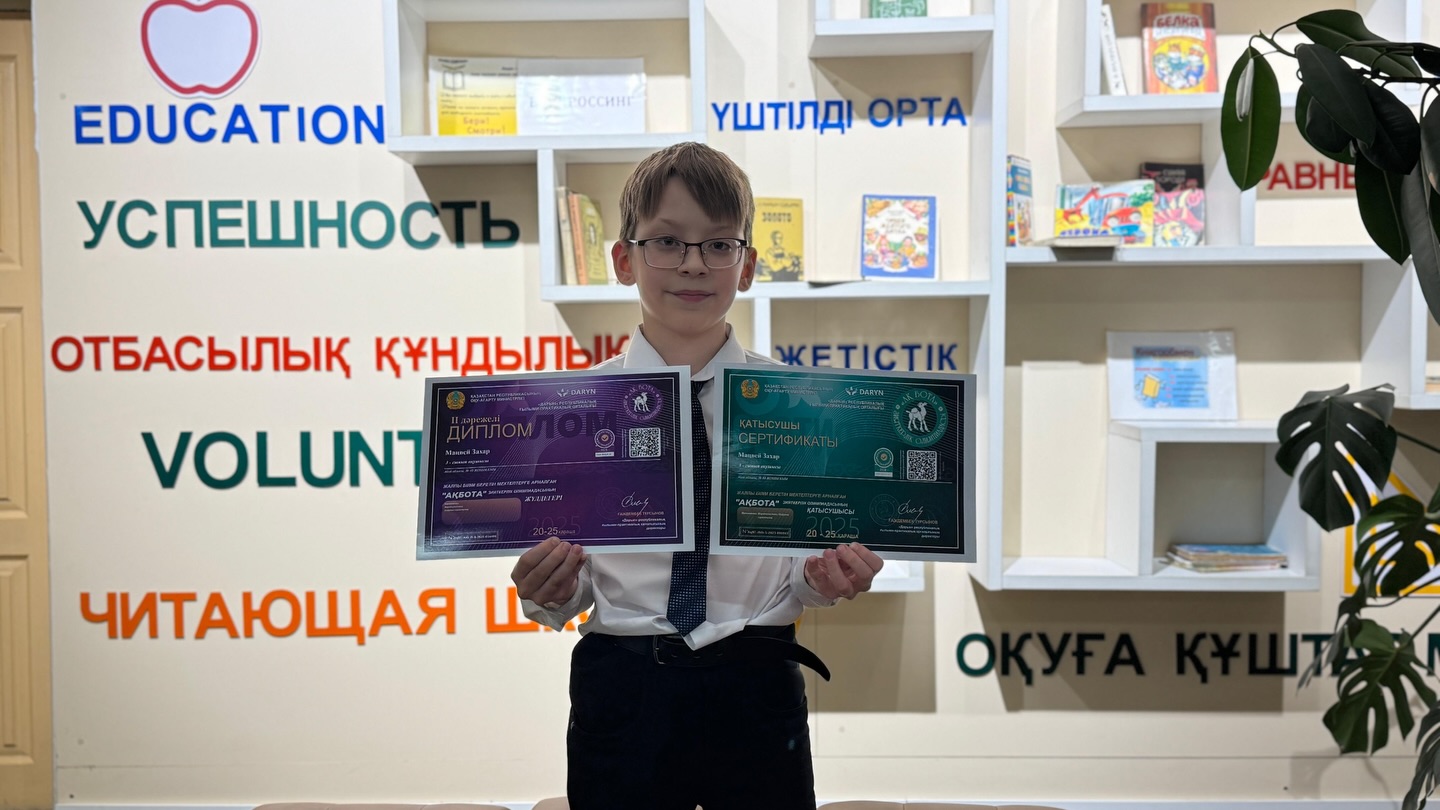 Поздравляем Захара с призовым местом в Республиканской Олимпиаде АКБОТА. 3 «А» классный руководитель Фролова Г. А.