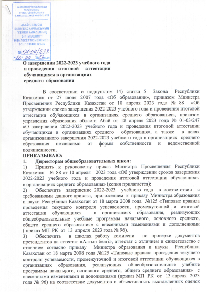 Приказ о завершении 2022-23 учебного года