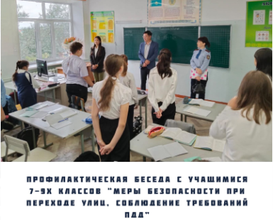 5 сентября 2023 года участковый инспектор полиции по делам несовершеннолетних Затонского отдела полиции УП г.Семей капитан полиции Рыспаева Мадина Маженовна в рамках ОПМ «Внимание, дети!» провела профилактическую беседу с учащимися 7-9 классов » Меры безопасности при переходе улиц, соблюдение требований ПДД»
