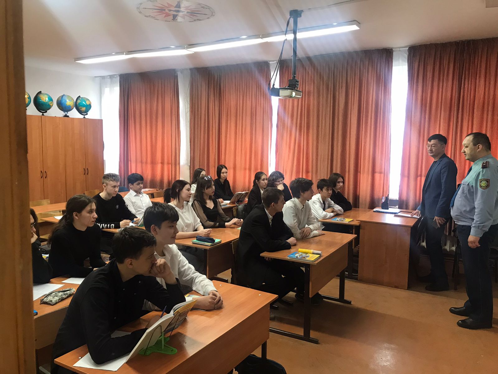 2023 жылдың 28 наурызында Затонский ПД кәмелетке толмағандар істері жөніндегі инспекторы полиция майоры Кизашов Н.А. «Жолдарда балалардың қауіпсіздігі» акциясы аясында 2023 жылдың 28 наурызында 7-9 сынып оқушыларымен «Жолда жүру ережелері», «Кәмелетке толмағандар арасындағы құқық бұзушылықтың алдын алу» тақырыбында профилактикалық әңгіме өткізілді.