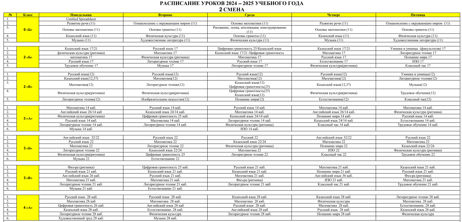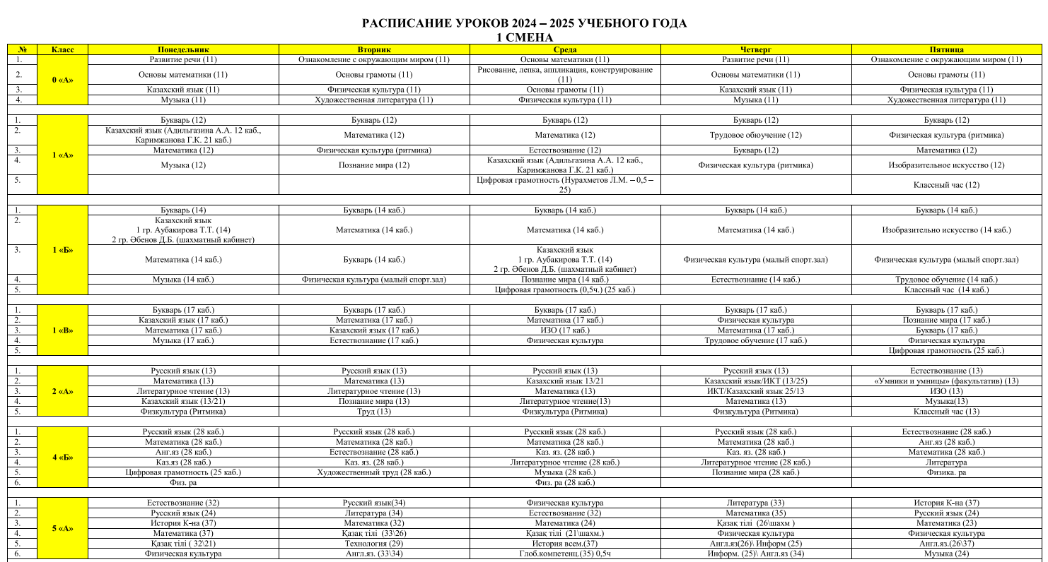 Расписание уроков на 2024-25 учебный год